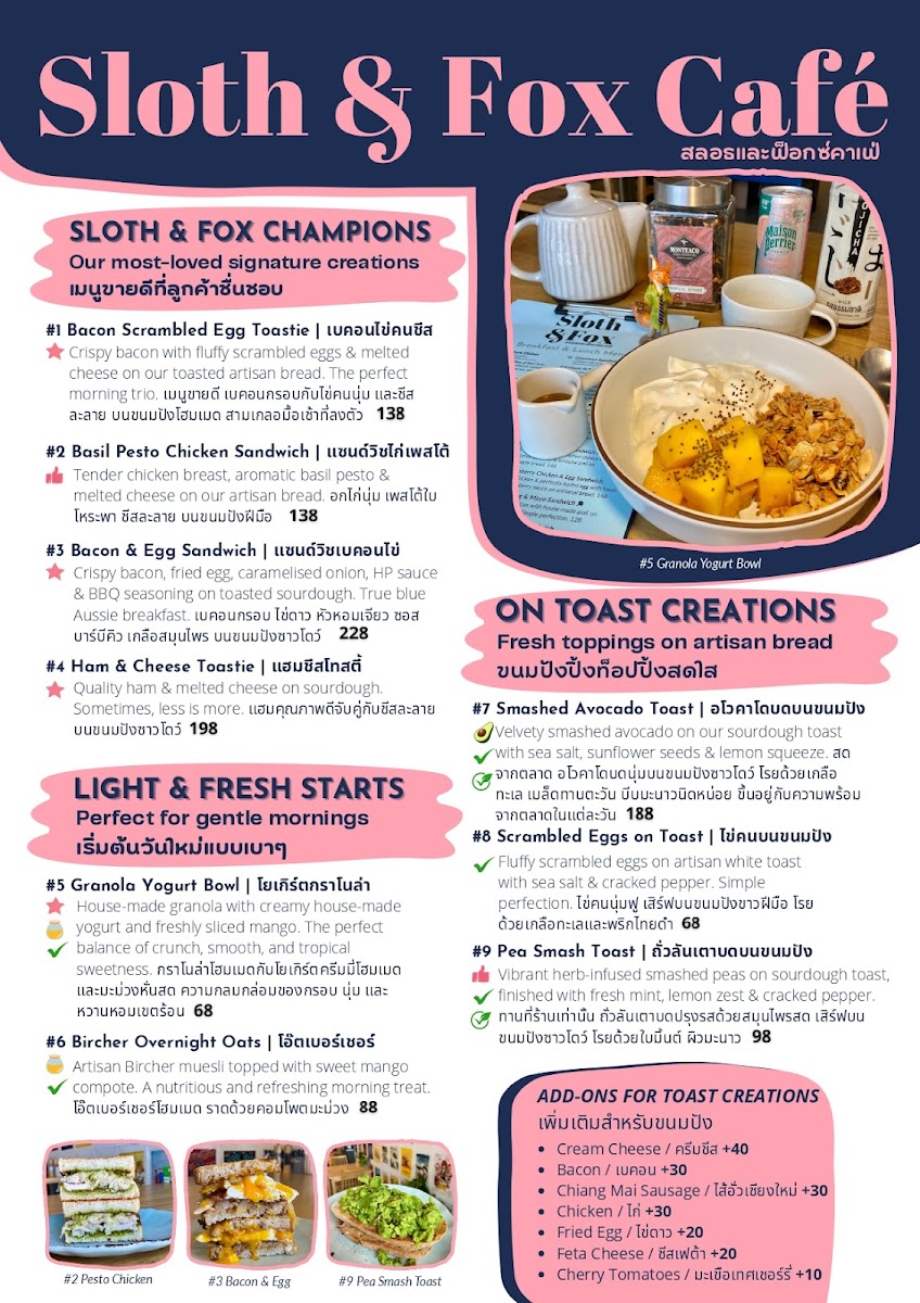 Welcome to Sloth & Fox Café, a charming sanctuary nestled in the vibrant Udom Suk area of Bangkok. This café is not just a place to grab a bite; it's a culinary experience crafted with high-quality ingredients and artistry.